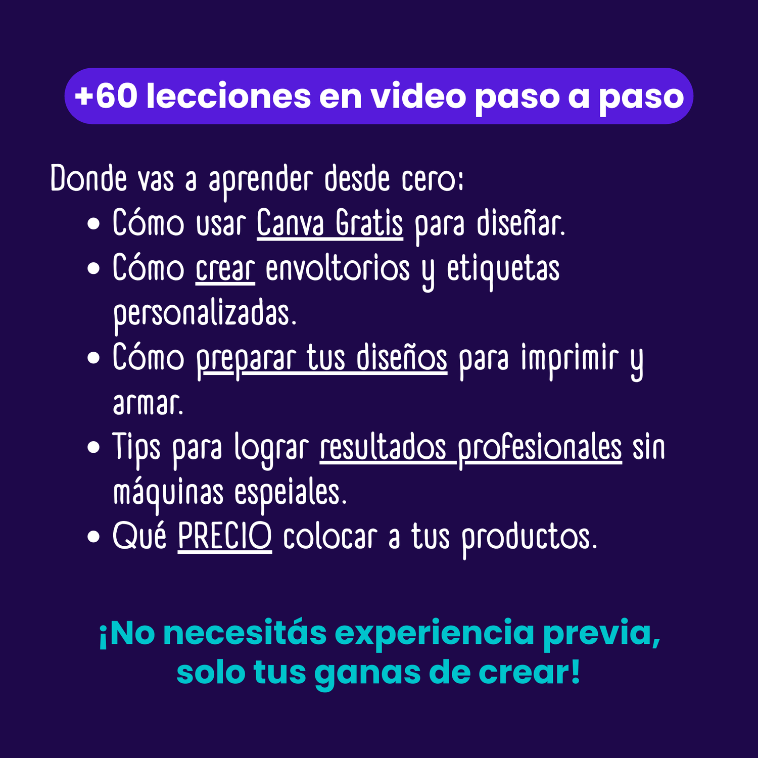 ¡Para nada! El curso está pensado para quienes empiezan desde cero. Te explico paso a paso cómo crear envoltorios y etiquetas desde Canva, aunque nunca hayas diseñado antes.